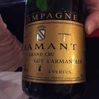 Lite senare på kvällen, som aperitif innan  kvällsmaten, fick vi den här champagnen. Frisk med trevliga toner av citrus, gula äpplen, mineraler och rostat bröd.
